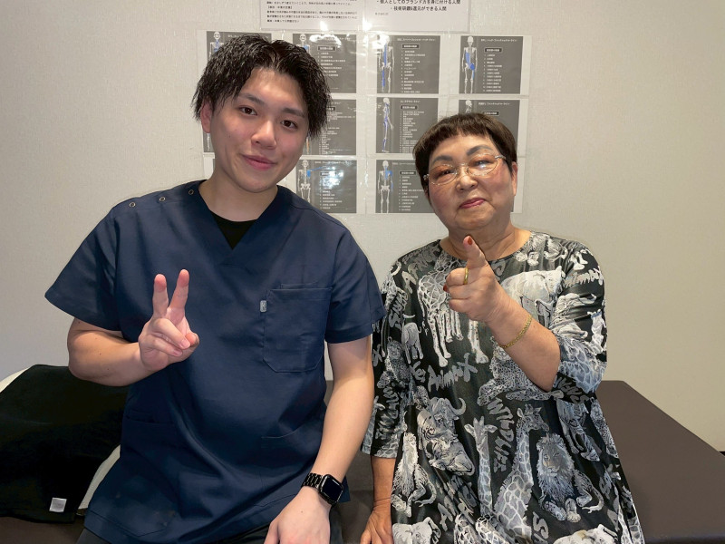 「寝返りをする度に痛くて起きていたのが、今ではぐっすり寝られるようになりました!」 もともとお医者さんから「膝と股関節が変形している」と言われていて、ついにはお尻まで痛くなってしまい、腰椎すべり症からくる神経痛だと診断を受けました。 こちらに来て、お尻の痛みの原因が腰からくるものだけでなく、股関節周りの筋肉の硬さや、腰を支える筋力が落ちてしまっていることを知りました。最初の頃は、寝返る度に痛みで目が覚めてしまい全然寝られなかったのですが、施術と教えて頂いたお家でのトレーニングを続けていたら、お陰様でいつの間にか眠れるようになりました。 正直年齢もあり諦めていたので、とても嬉しく思います。ありがとうございます (Y,K様 80代女性) ※効果には個人差があります |